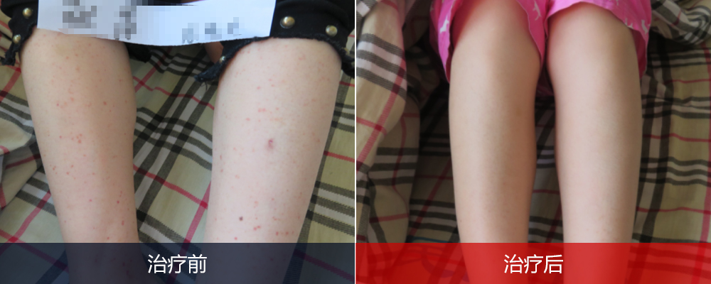 一、皮肤症状:身体皮肤上出现红点红斑样皮损症状,常出现在双下肢和臀部,少见与面部和躯干部位。分批出现、对称分布,无痛感痒感,摁压不褪色。